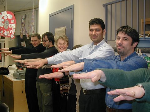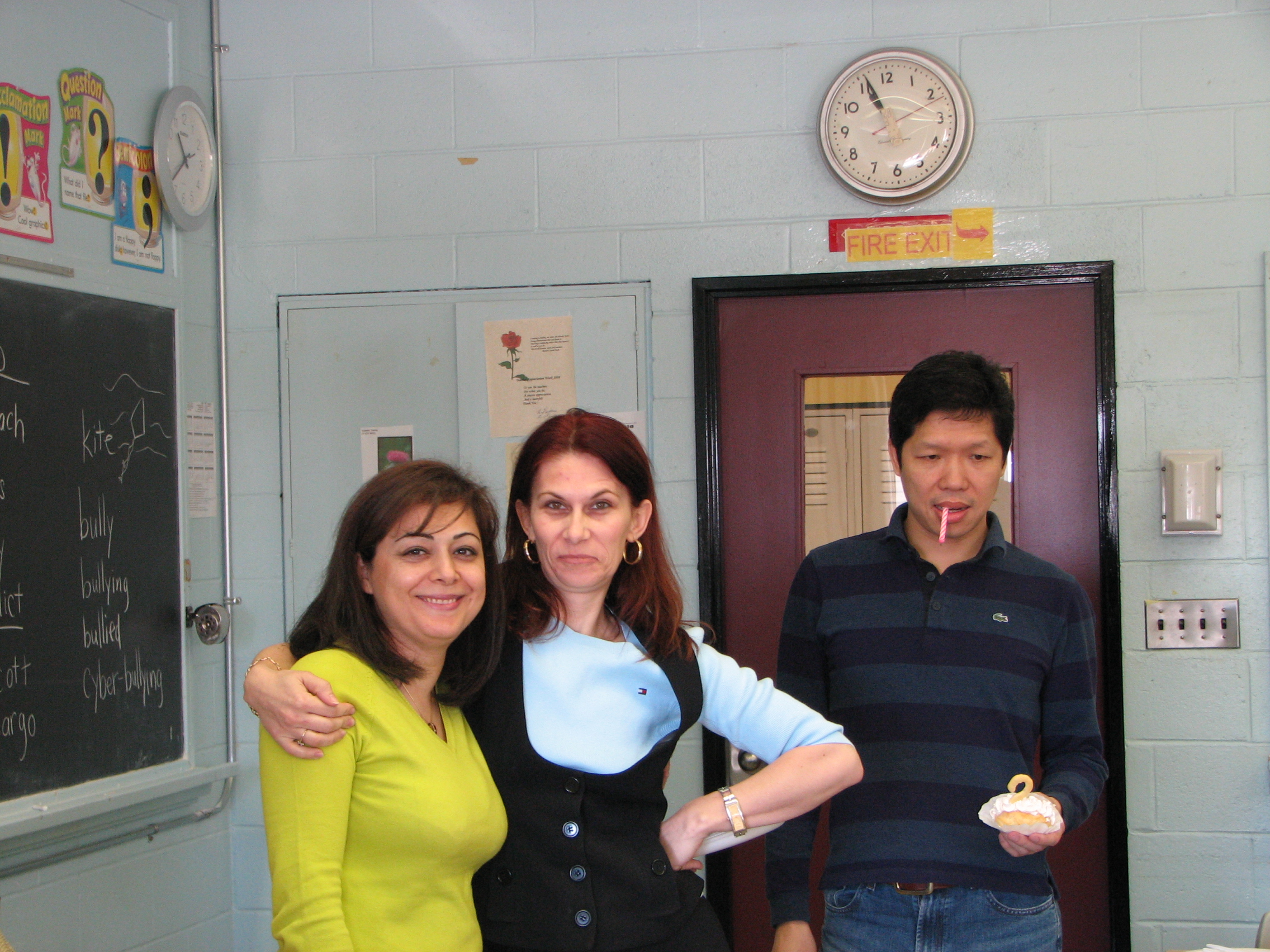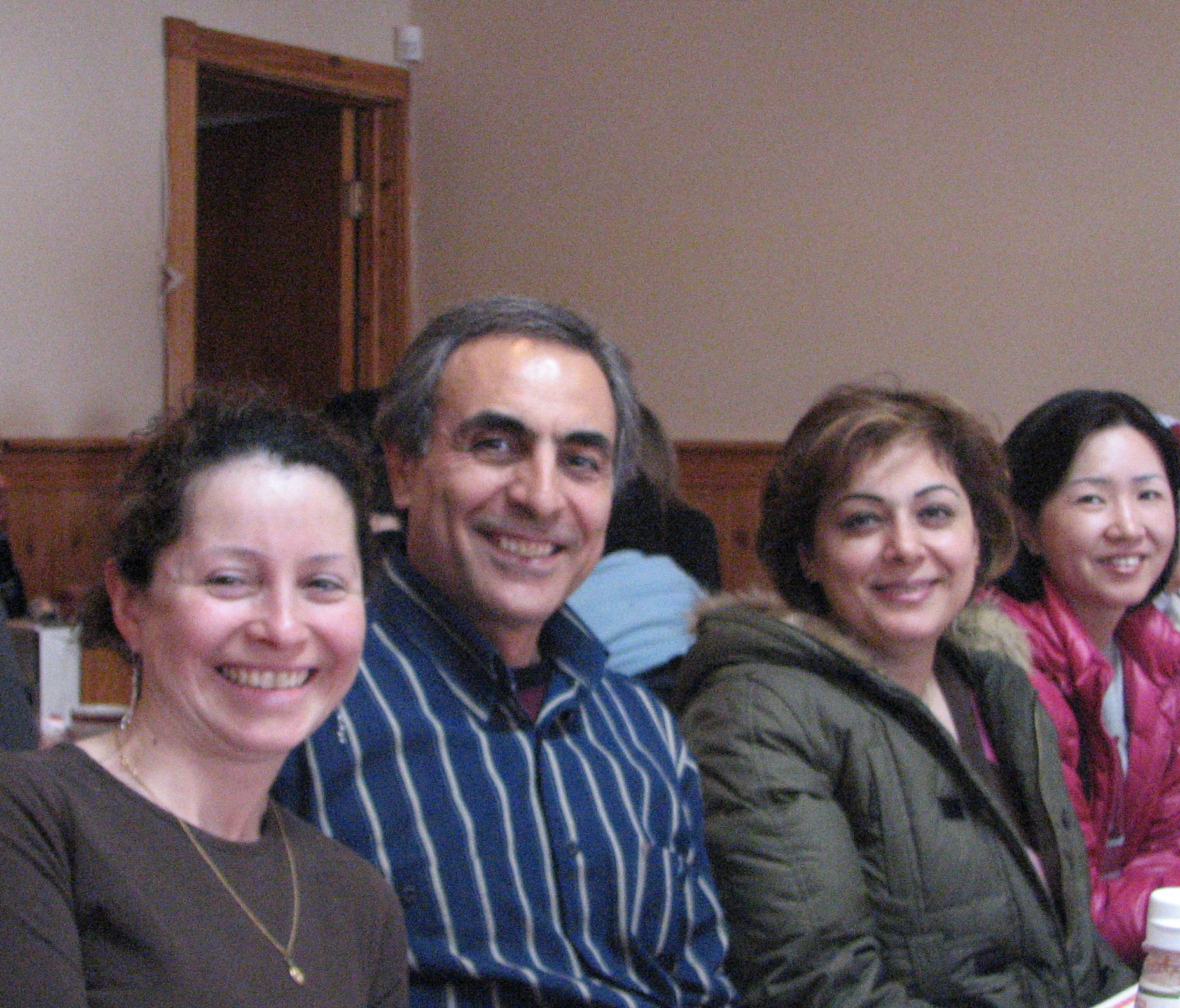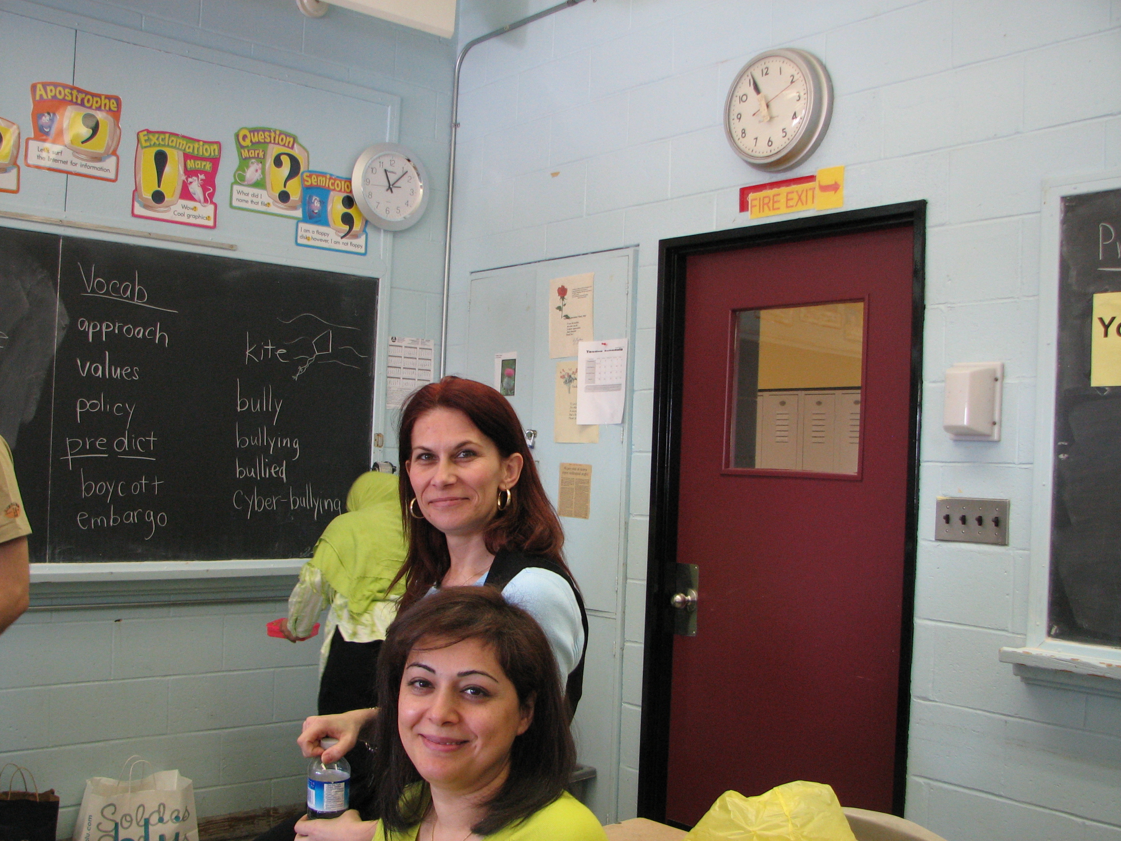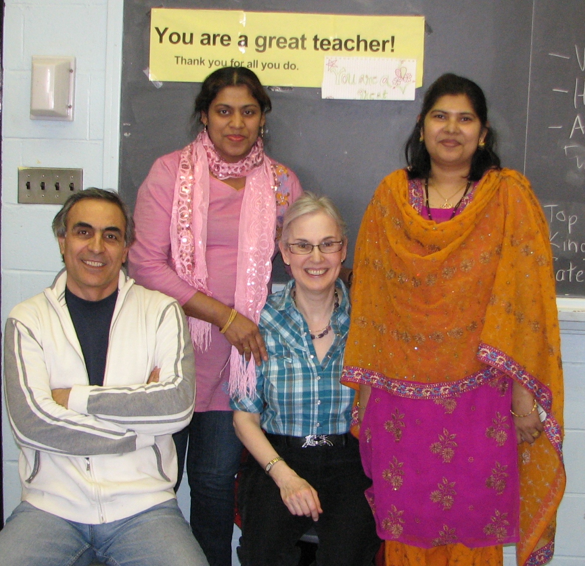 Sadia and Famida brighten the classroom with their colourful clothes. Fotros is our "business manager", agent and standup comic.