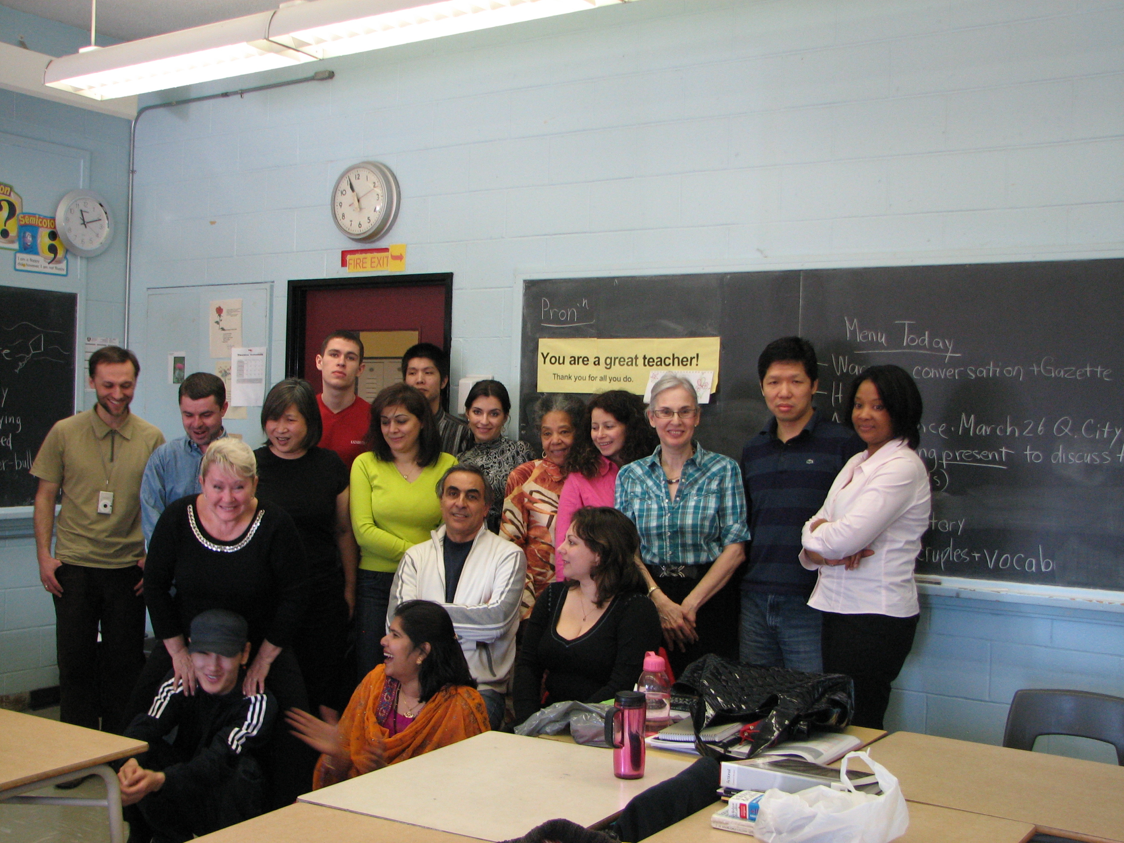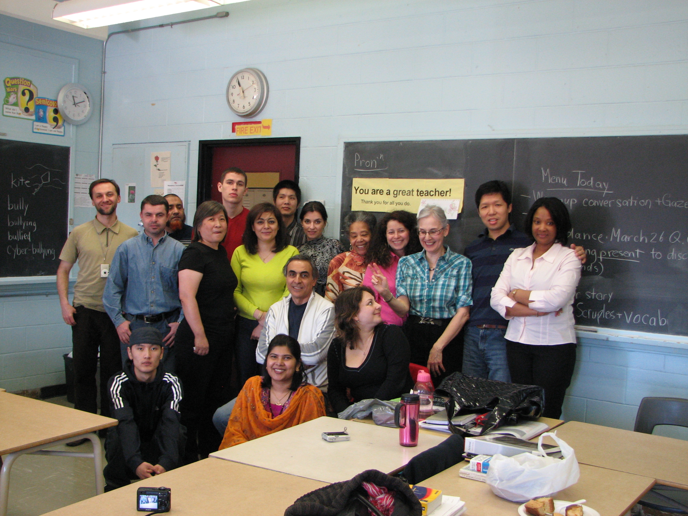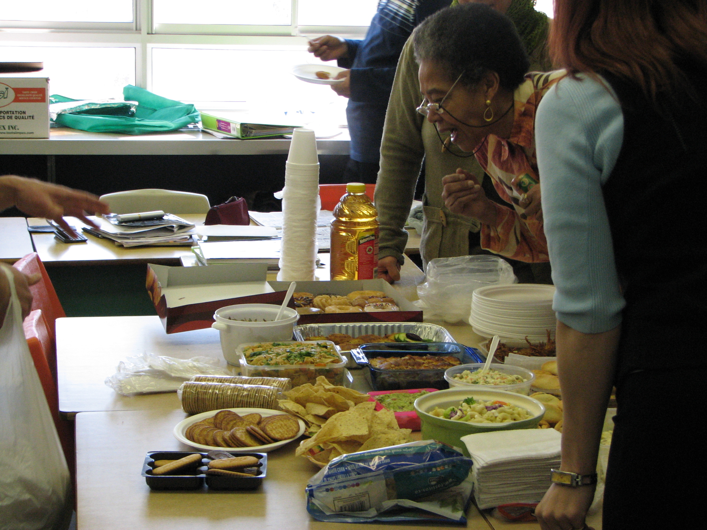 students of Marymount Adult Centre get together after class to practice English at a buffet lunch